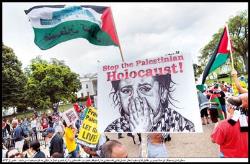 گروهی از تظاهرکنندگان همچنین با حضور در برابر دفتر روزنامه واشنگتنپست، با متهم کردن این رسانه به جانبداری از رژیمصهیونیستی، تابوتهایی را به نشانه قربانیان حملات اسرائیل به نوار غزه در برابر این ساختمان قرار دادند.
