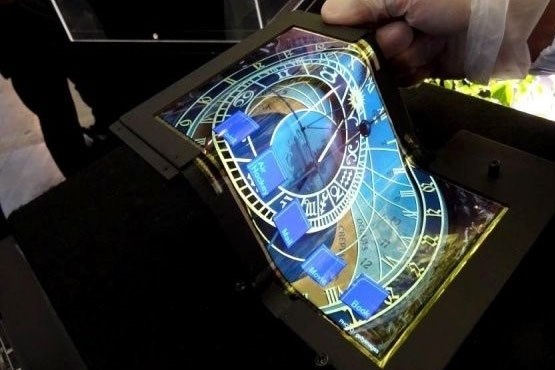 تولید کنندگان صفحه نمایشی هوشمند و انعطاف پذیر تولید کردهاند؛ نمونه اولیه آن، یک دستگاه دوکاره است که توسط شرکت Semiconductor Enrgy Laboratory توسعه یافته است که وقتی تا میشود به شکل گوشی است و زمانی که باز میشود به عنوان تبلت استفاده میشود.
