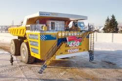 درشتی قسمت جلوی کامیون به خاطر دو موتوری است که در این قسمت قرار دارد. راننده باید از یک نردبان یا تعدادی پله خود را به کابین دونفره آن برساند. الگزاندر اِگورُو، طراح اصلی و رهبر گروه تحقیق و توسعه BelAz می گوید: در BelAZ، تولید تجهیزات خود را بر اساس دو اصل استوار کرده ایم؛ یکی افزایش حجم استخراج معدن به مرور زمان، دیگری روند رو به رشد دائم حجم تجهیزات استخراج. با پذیرفتن این دو اصل به این فکر افتادیم که حجیم ترین دستگاه را ارائه دهیم. با توجه به گسترش بازار شرکت به استرالیا، آفریقای جنوبی و شیلی، انتظار می رود در سال 2015 و پس از آن درخواست های زیادی برای این دستگاه ارائه شود.