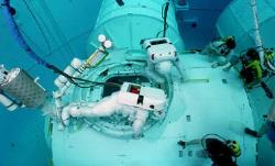 همچنین فضا نوردان قبل از ماموریت، روی کره ی زمین در محفظه هایی پر از آب راه رفتن را تمرین می کنند. شناور بودن یک لباس فضانوردی بسیار شبیه به حالتی است که گرانش بسیار کم شده است.