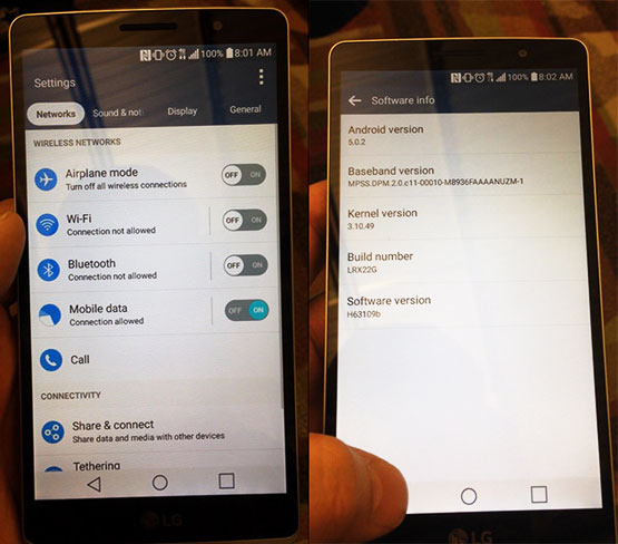 دیگر تفاوت‌های مهم ظاهری این دستگاه با نسخه قبلی را نیز می‌توان در دو بخش دکمه روشن و خاموش کردن دستگاه که به شکل مستطیلی طراحی شده و لنز مربعی شکل دوربین دانست. در ادامه نیز وجود عبارت M8936 در بخش baseband version موجب شده است تا شایعاتی مبنی بر وجود پردازنده اسنپ دراگون 610 بر روی این دستگاه قوت بگیرند. البته تمام این موراد هنوز درحد شایعه هستند و تا تائید رسمی شرکت ال‌جی، هیچ چیز قطعیت نخواهد داشت.