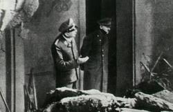 اين تصوير آخرين عكسي است كه پيش از خودكشي هيتلر از او به ثبت رسيدهاست، وي در اين عكس درحال بررسي خسارتهاي وارد آمده توسط متفقين به نزديكي محل اقامتش است.