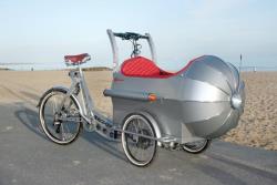 این سه چرخه باری موشک مانند که تا حدودی یادآور فضاپیماهای خیالی داستان های علمی ـ تخیلی ژول ورن است، نمونه ای از استفاده بهینه از هنر کاربردی است و از این قابلیت برخوردار است که براحتی وارد زندگی روزمره مردم شود. فضای نشیمن جلویی این سه چرخه دارای اتاقی برای نشستن 4کودک روی 2 صندلی نیمکتی را عرضه و کمربندی های ایمنی آن، امنیت و ایمنی کودکان را فراهم می کند. همچنین پشتی این صندلی ها می توانند به طرف عقب خوابیده و یک تختخواب مسطح را ارائه کنند. به این ترتیب، زمانی که سه چرخه پارک شده باشد، کودک براحتی می تواند دراز بکشد. بخش داخلی انتهای حفره مخروطی بدنه این اتاق مجهز به محفظه ای برای ذخیره و نگهداری 5 کلاه ایمنی و وسایل ضروری دیگر است. هریک از این سه چرخه های موشک مانند شامل سیستم کامل برق با چراغ جلو مجهز به نور بالا و پایین، چراغ عقب، نشانگرهای راست و چپ و بوق الکتریکی است. سوئیچ نصب شده روی فرمان نیز امکان کنترل را در اختیار سه چرخه سوار می گذارد.